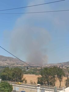 A fire broke out shortly after 1 p.m. on Wednesday (27/8) in Paliokamariza, Lavrio. Shortly after 2:00 p.m., a 112 emergency alert was sent for the evacuation of Thorikos. “If you are in the area of Thorikos, Lavrio, move away toward Lavrio,” the message read.