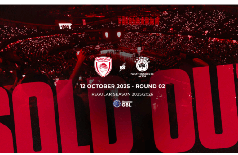 “Olympiacos BC informs its fans that the tickets for the match against Panathinaikos, part of the Stoiximan GBL, scheduled for Sunday, October 12, 2025, at 19:00, are sold out!