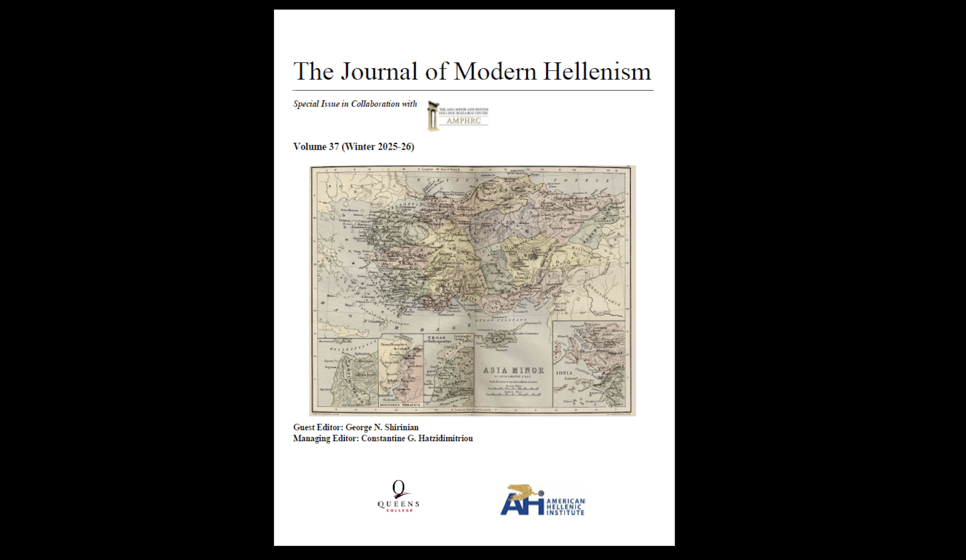 The volume continues the long-standing collaboration between AHIF and the Center for Byzantine and Modern Greek Studies at Queens College in the co-publication of the journal. It also reflects the academic mission of the Asia Minor and Pontos Hellenic Research Center, which has played a central role in advancing rigorous, comparative research on the genocide of Ottoman Christian populations and promoting public education on the subject.