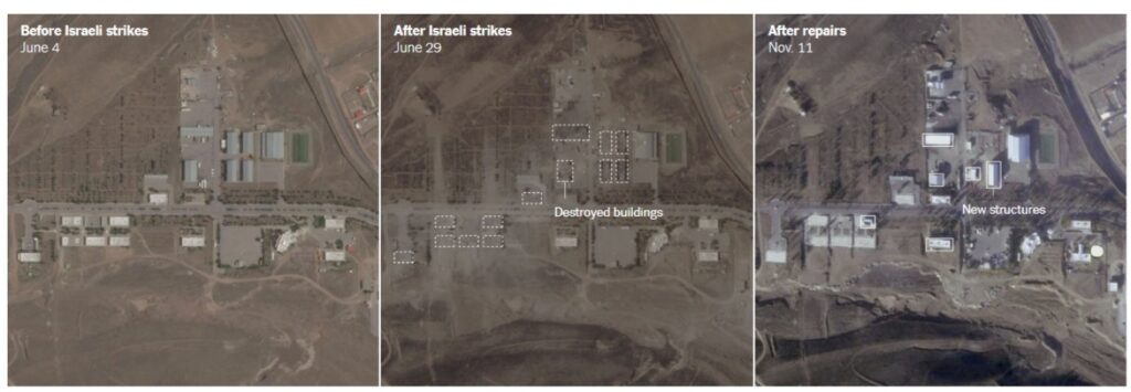 By contrast, experts say that images from Iran’s heavily damaged major nuclear facilities show only partial repairs and reinforcement of infrastructure, with related work accelerating only in recent months. Western and Israeli officials have not identified clear signs that Iran has made substantial progress in restoring its ability to enrich nuclear fuel or to build a nuclear warhead.
