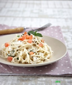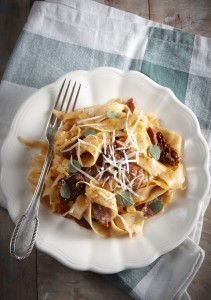 Salami and tomato sauce fettuccine