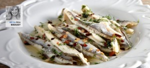 Fresh anchovies, marinated in vinegar and salt, flavored with dill, coriander and chilli flakes: the best meze to accompany ouzo or tsipouro.