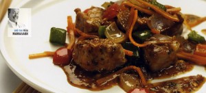 Bite-sized pork with red curry