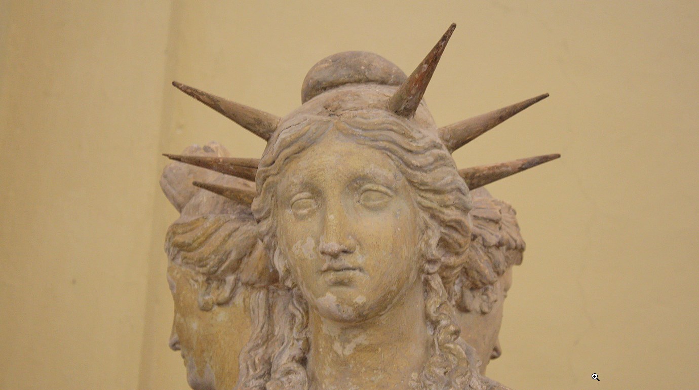 The sculpture, which is nearly eight inches tall, depicts the goddess with three heads