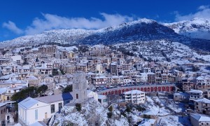 The traffic jam has been created on the road to Livadi and the Ski Resort - Snowplows are trying to open the road