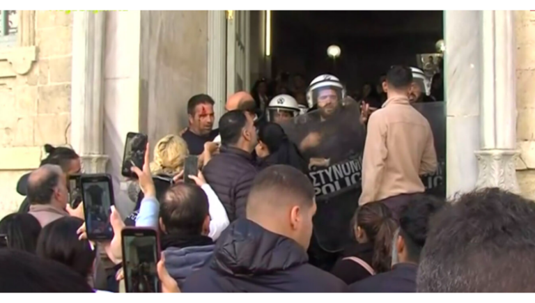 Clashes erupt outside Heraklion courthouse as angry crowd attempts to storm the building (updated)