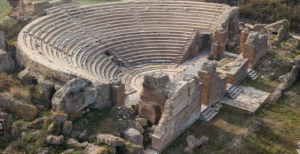 The remains of the victory monument still survive adjacent to Nicopolis, the largest ancient ruined city in Greece