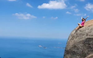 She posed for a video on the edge of a cliff nearly 3,000ft above the ground
