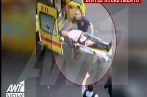 VIDEO: Papademos -bleeding- carried into the ambulance!