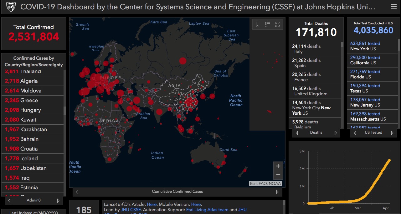 Over 2,5 million confirmed cases, according to data tabulated by John Hopkins