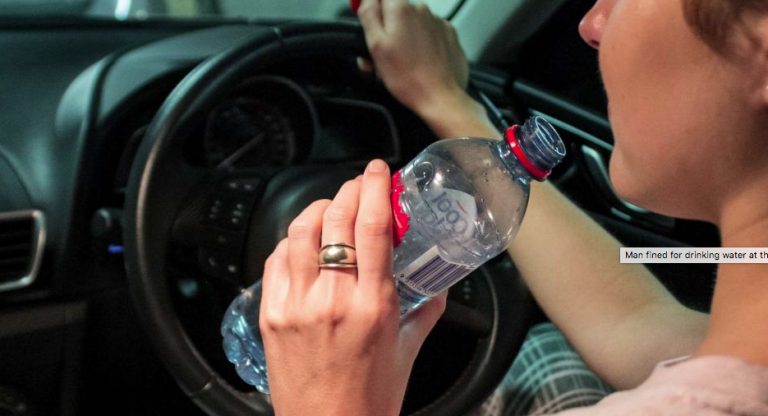 Driver fined with $173 (AU) for drinking water in the heat