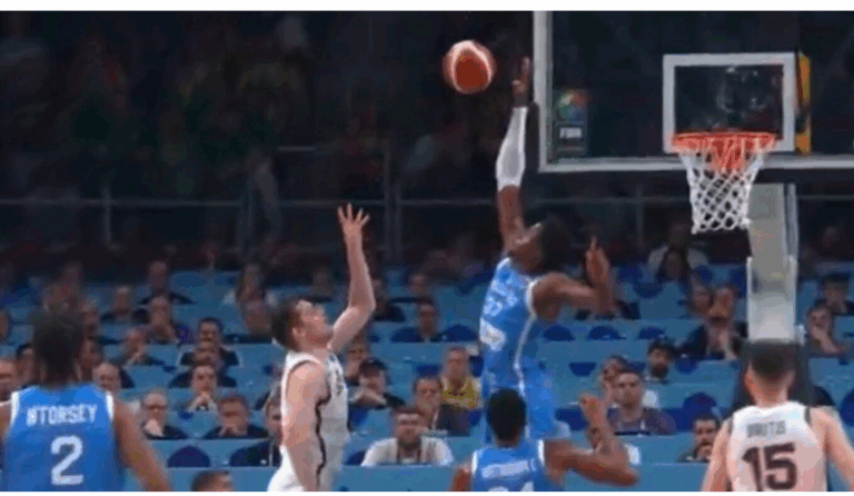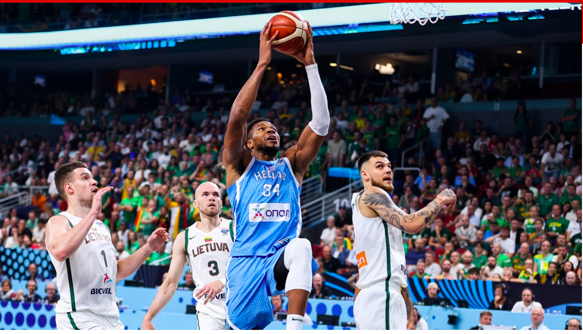 Kostas Antetokounmpo at the start of the EuroBasket 2025 quarterfinal against Lithuania, erecting a defensive wall and “switching off” multiple scoring attempts by Greece’s opponents