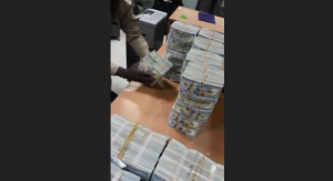 According to a video that has since gone viral Sudanese officials are seen removing the stashes of dollar bills from suitcases