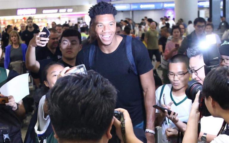 Chinese fans surrounded Giannis Antetokounmpo for a selfie