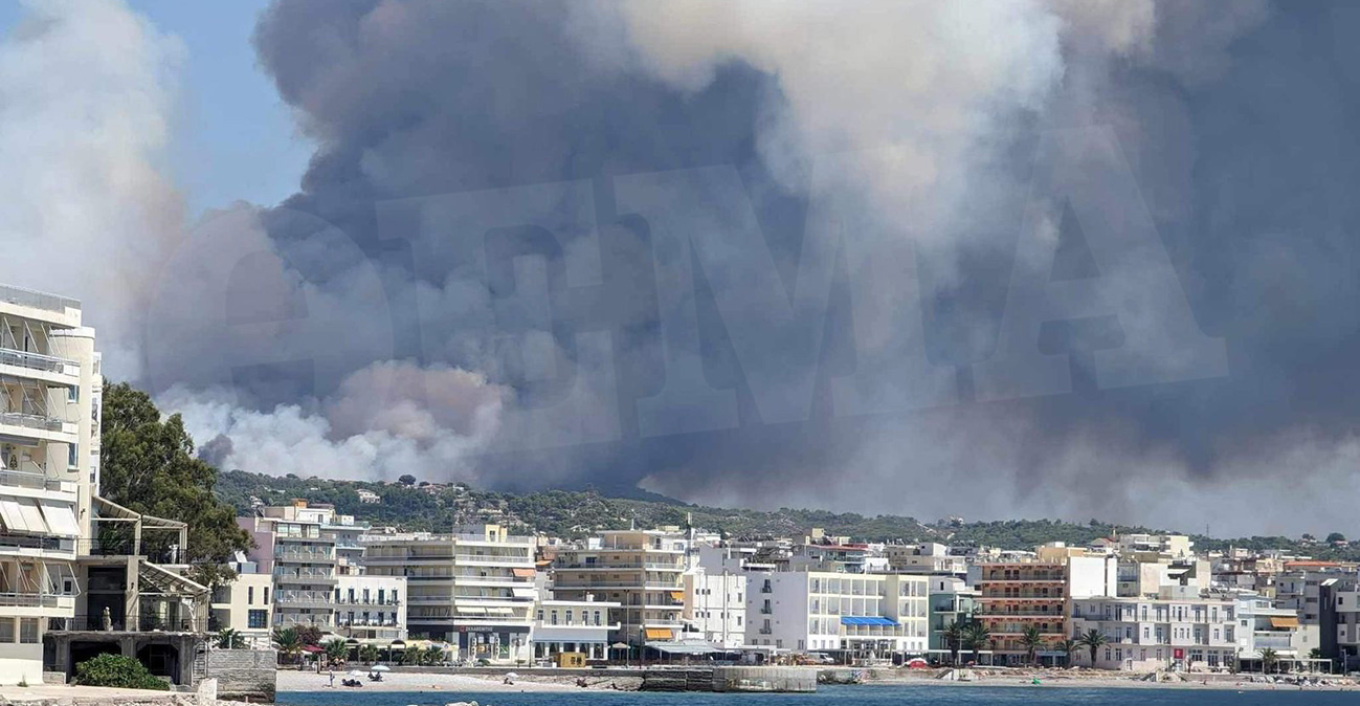 A fire broke out around noon on Thursday (July 3) in low vegetation at the intersection of Marathon avenue and Arionos street in Rafina