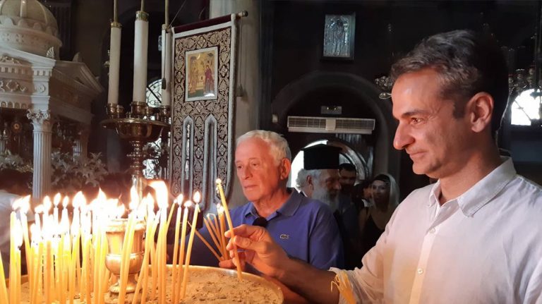 PM Mitsotakis attends evening prayers in Tinos (photos)