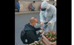 Chinese people kneeling in the streets to get their vaccination passes scanned (video)