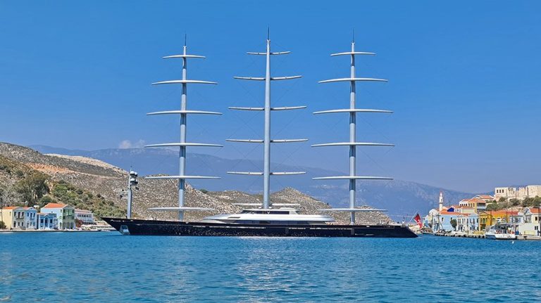 Impressive photos of largest sailing yacht “Maltese Falcon” in Kastellorizo (video)