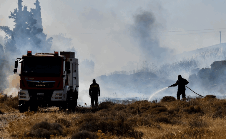 Exhausted firefighters lying on the ground to rest from the fire in Keratea – The photo that has gone viral