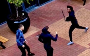 Most of the 10 or so people involved in the scuffle that took place outside the shop are said to have a criminal past