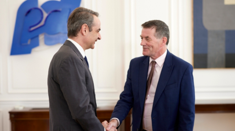 Greek Prime Minister Kyriakos Mitsotakis met with the President of the European Court of Auditors, Tony Murphy, at the Maximos Mansion, discussing the country's effective use of EU recovery funds