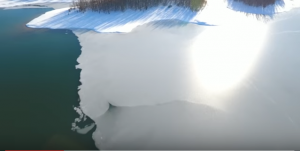 Frozen Lake Plastiras from above (video)