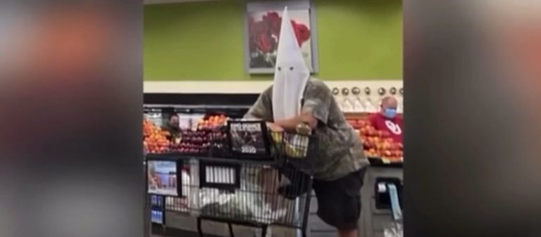 Man wears Ku Klux Klan hood as his COVID-19 mask