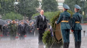 Watch Putin stand in pouring rain to honour WWII dead (video)