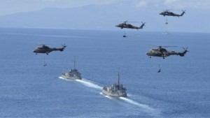 Greece’s frigate Lemnos with 4 F-16s fighters and helicopters contribute to the success of the exercise