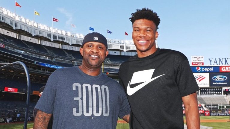 Giannis Antetokounmpo tries his luck at baseball (video)