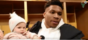 Giannis Antetokounmpo holds a baby during entire interview (video)
