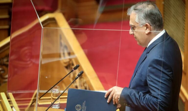 Greek Minister for Citizen Protection interrupts speech after feeling ill (video)