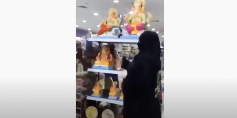 Footage of Burqa-clad Muslima smashing Hindu idols goes viral (video)