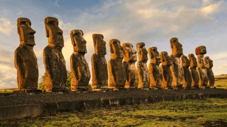 What are the giant stone Moai statues and what do they symbolize