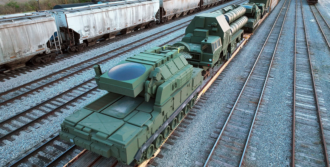 Two flatbed railcars were spotted there carrying what looks to be exactly like Russian-made S-300 and Tor-M1 surface-to-air missile systems