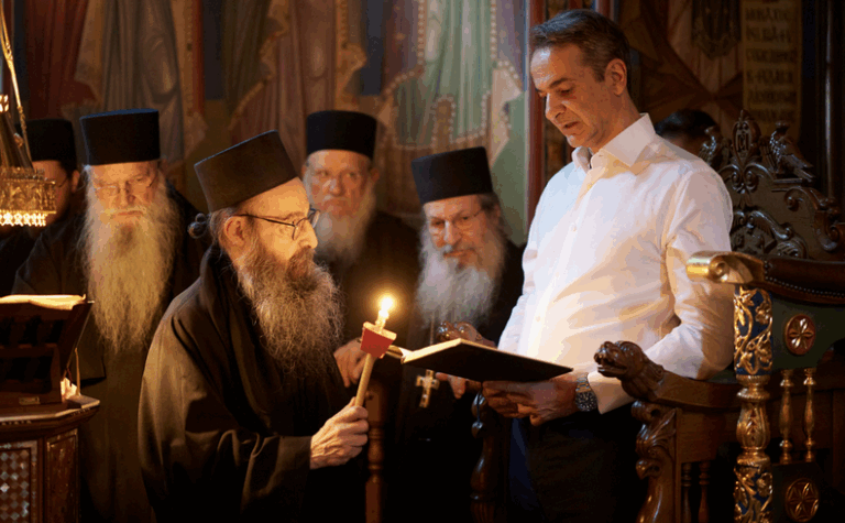 At Simonopetra Monastery with his son, Kyriakos Mitsotakis – The monks held a memorial service in memory of his parents