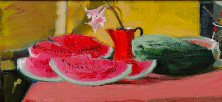 Stella Kapezanou creates large-scale paintings and ceramic sculptures, where vulnerability, power and the triumph of desire are woven into an aesthetically bold narrative