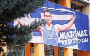 Next to the Olympic champion's side are the residents of Grevena who will gather to see his effort - Illuminated in the colors of the Blue and White the town hall and the Clock