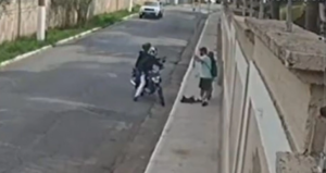 Shocking video: SUV crashes into robbers on motorcycle as they threaten a couple with a gun (video)