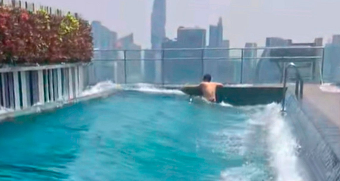 Thailand: Survival struggle in skyscraper pool from the 7.7-magnitude earthquake