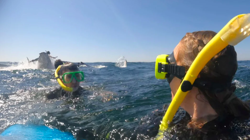 A group of tourists on a whale-swimming expedition in Australia captured the incredible moment when a 30-ton whale hurled their guide into the air